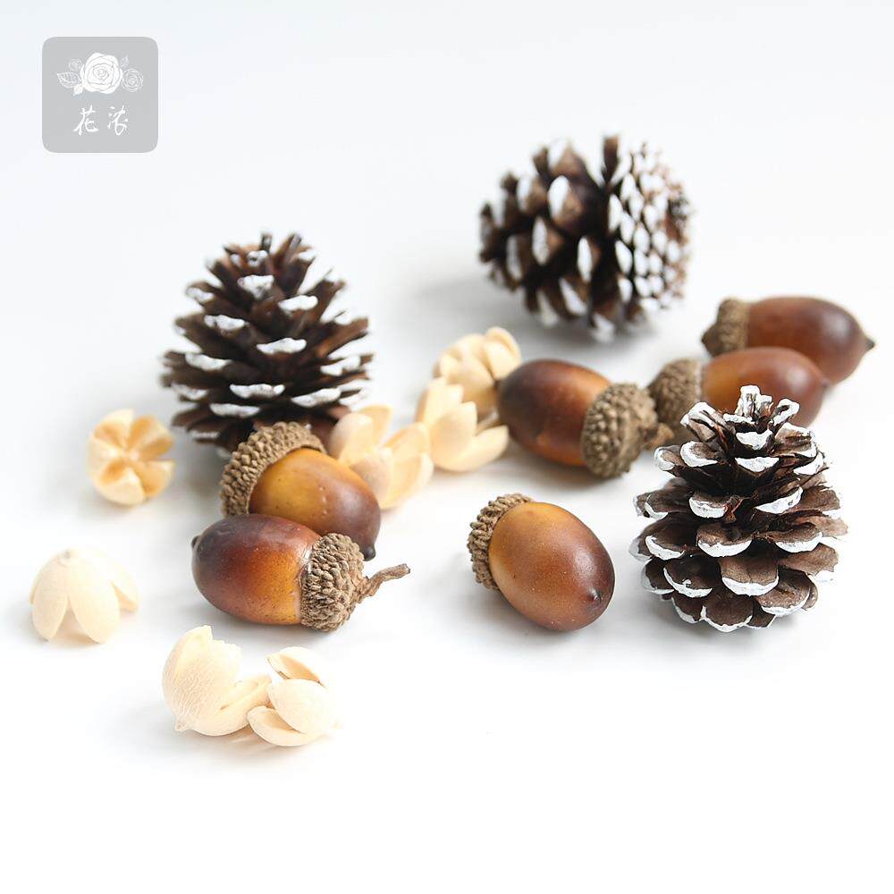 新款 饰品拍 直销永生花车挂花环制作配材各类干果刷白松果圣诞节装由