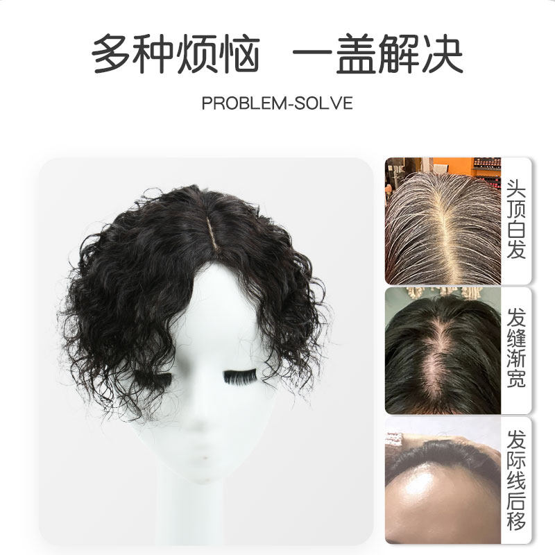 羊毛卷头顶补发片自然逼真卷发片女中老年假发片透气遮白发假发片