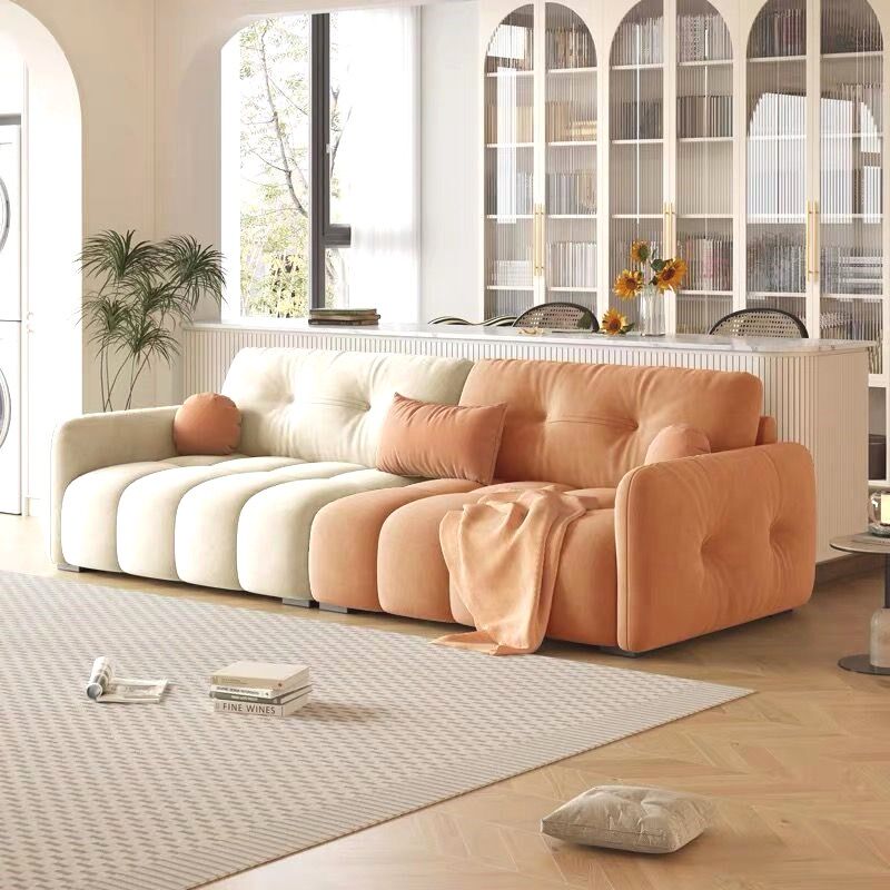 沙发客厅小户型绒布猫爪皮沙发奶油风网红沙发直排拼色公寓沙发由