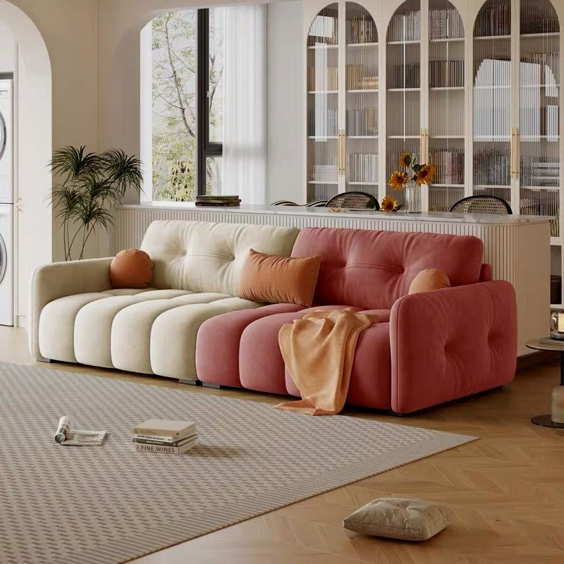 沙发客厅小户型绒布猫爪皮沙发奶油风网红沙发直排拼色公寓沙发