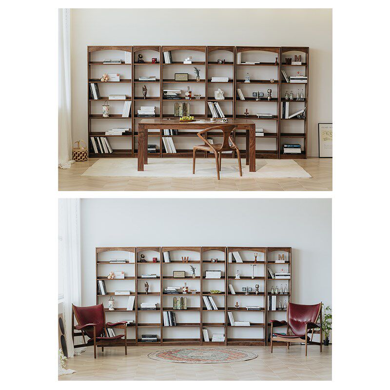 物应拱桥书柜黑胡桃木实木客厅满墙组合书架落地置物架自由组合架