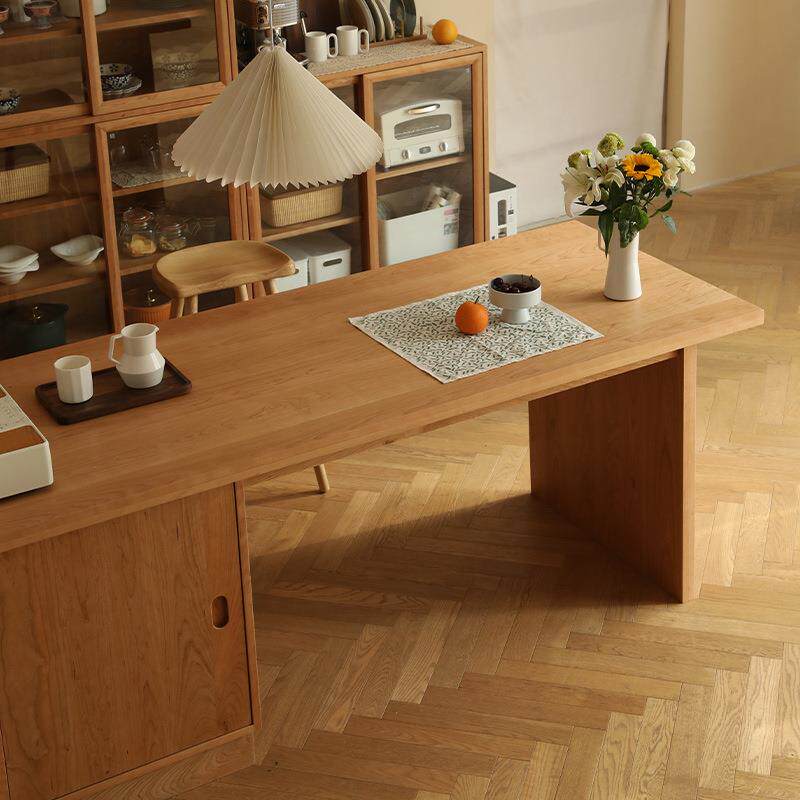 北欧全实木樱桃木岛台日式 餐厅现代简约吧台收纳储物桌餐桌 极简式