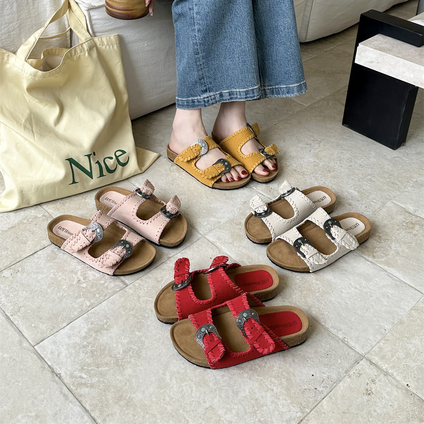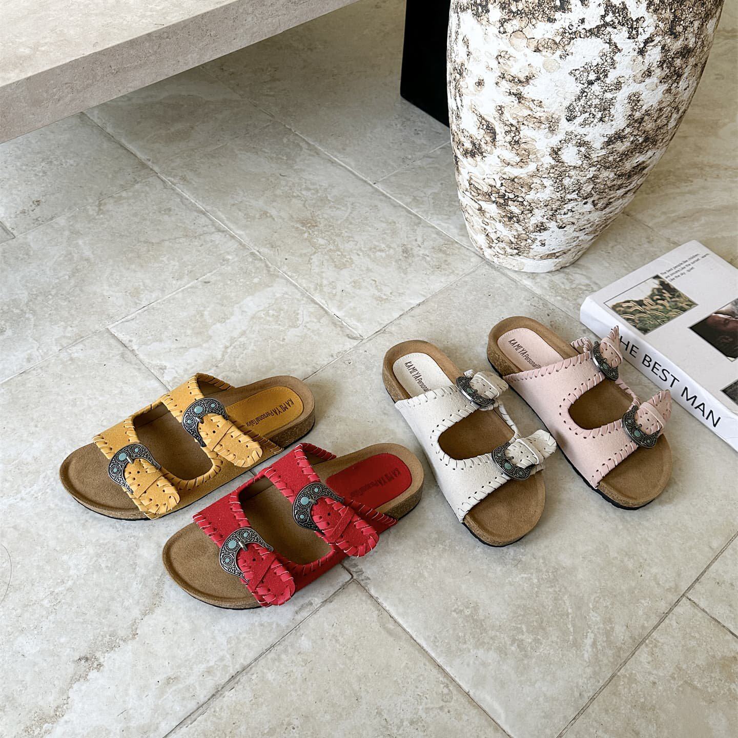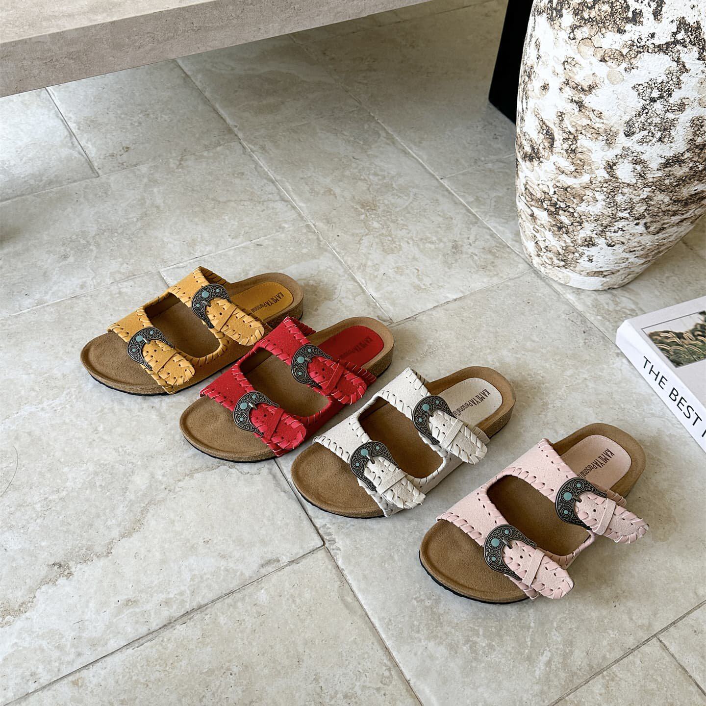 真牛皮凉鞋 女双搭扣一字拖外穿厚底防滑舒适百搭休闲凉拖鞋 勃肯鞋
