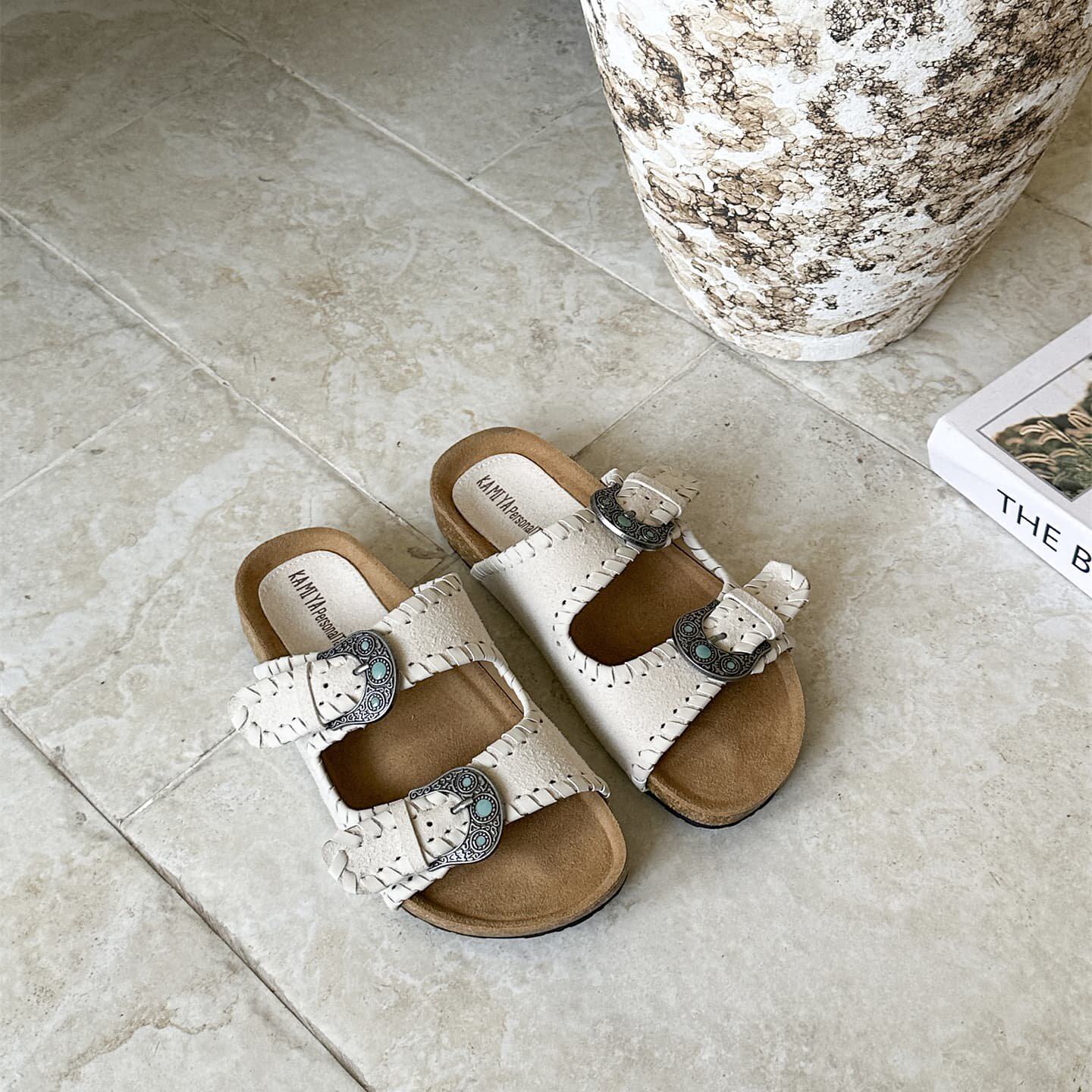 真牛皮凉鞋 女双搭扣一字拖外穿厚底防滑舒适百搭休闲凉拖鞋 勃肯鞋由