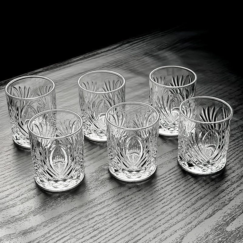 小酒杯新款 创意高颜值宝石纹冰山底浮雕一口小白酒杯 6只装