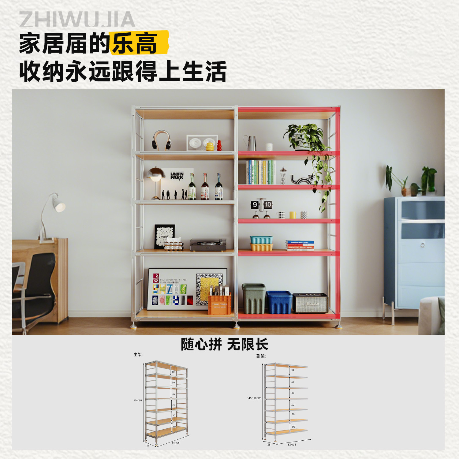 铝型材置物架落地多层实木书架顶天立地不锈钢货架陈列展示收纳架由