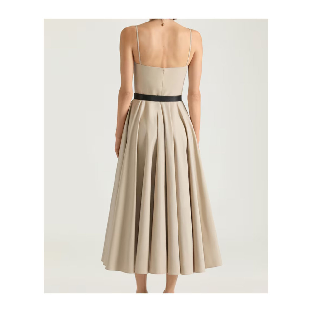 吃绿色菜 气质无袖 挂脖交叉系带连衣裙度假长裙 内有衬裙 樱落