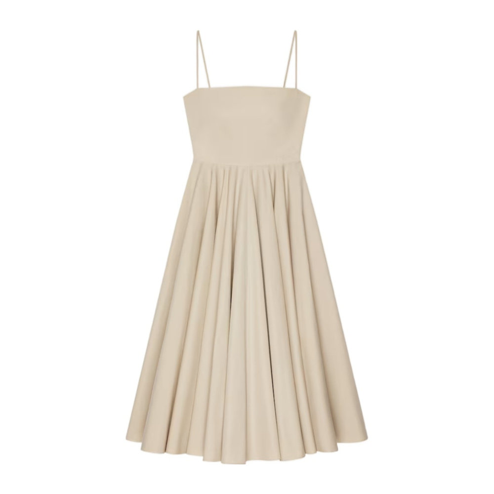杏色方领吊带连衣裙女春法式 初恋清纯收腰裙子 miu系波点 柒月末