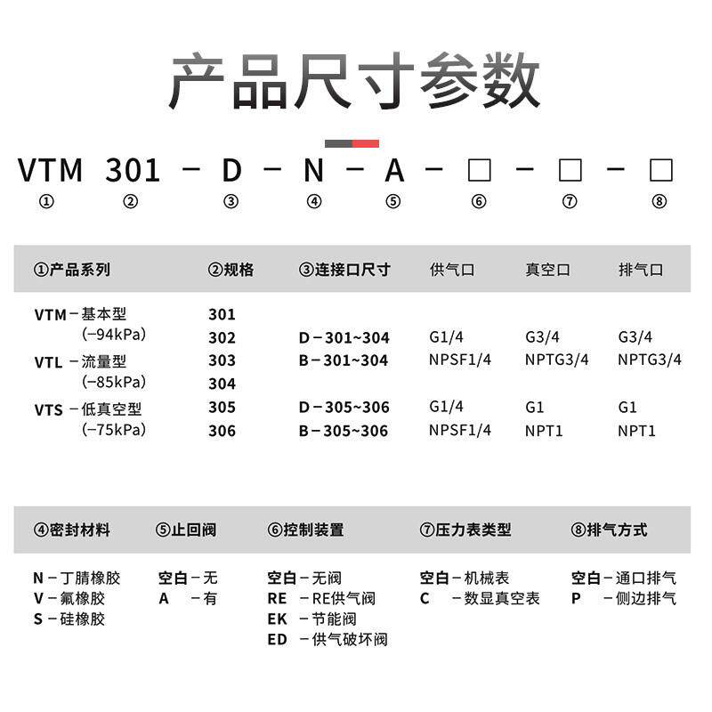 为您提供商品多级真空产生器VTM301 306 EK大流量吸力 305 304 303 302的详细介绍,