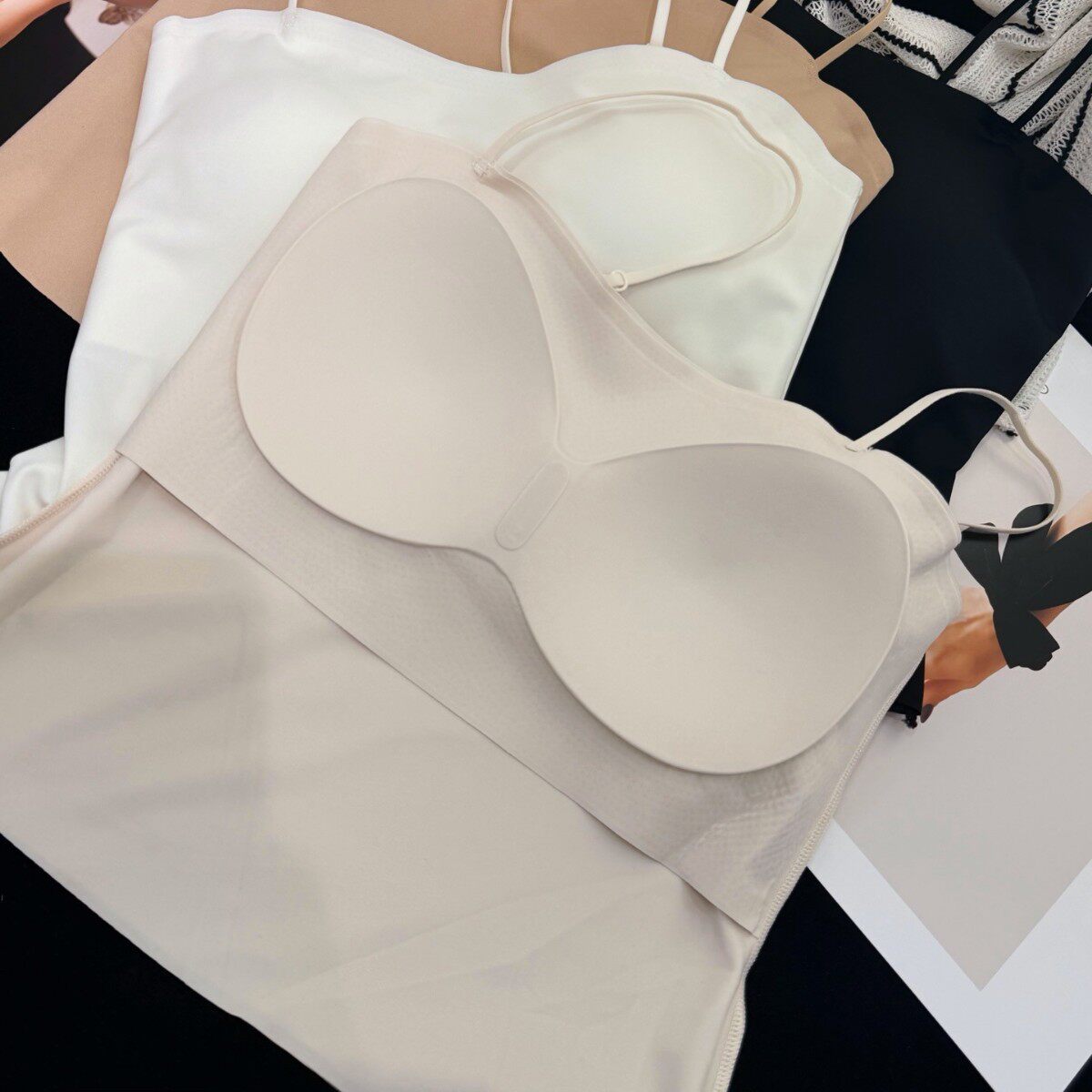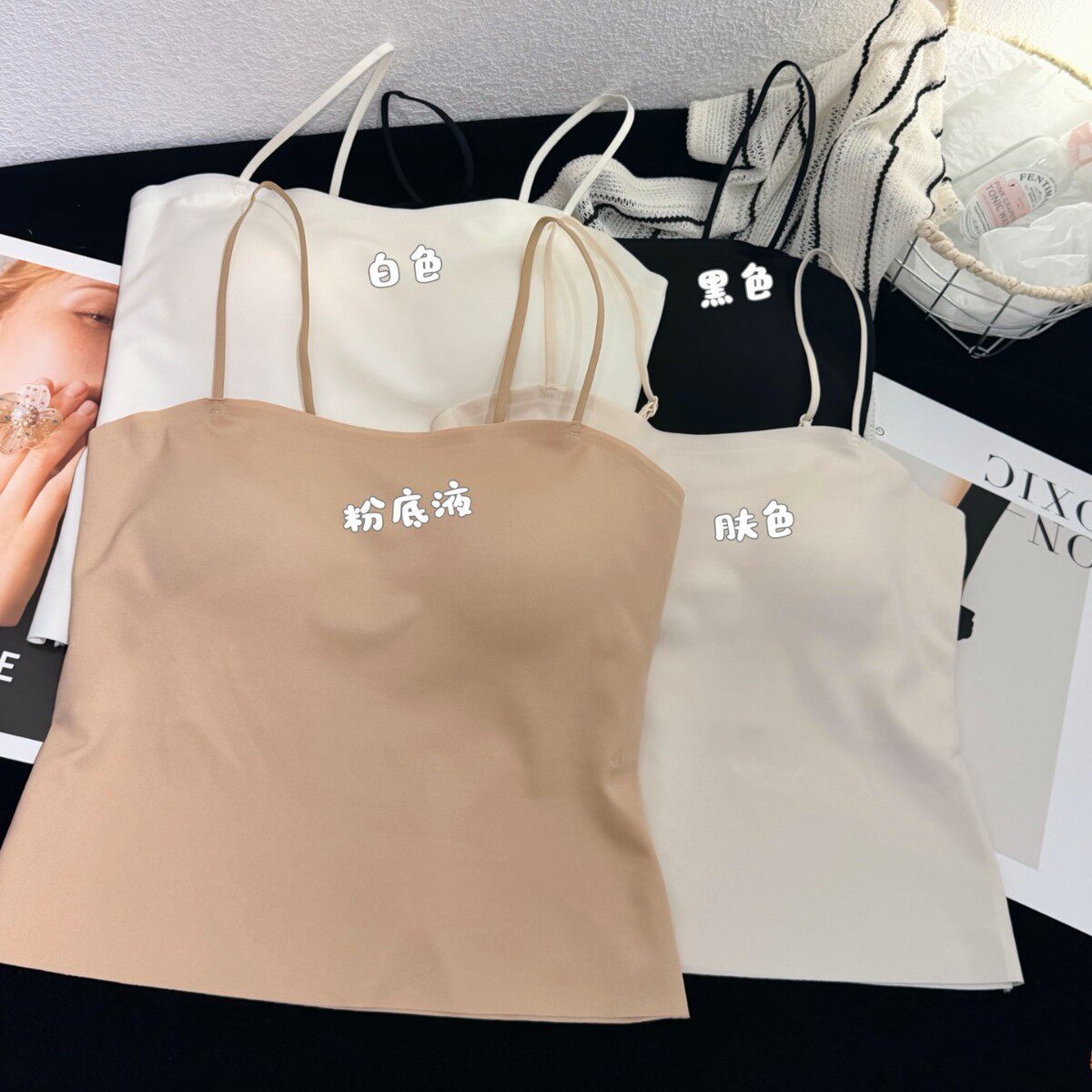 美背固定杯裹胸 366吊带背心细肩带外穿裸感无痕隐形内衣一体式