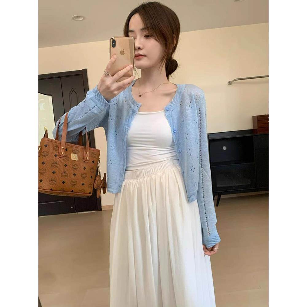 春夏奶黄色小香风防晒镂空针织开衫 0329z 女早秋小个子温柔短款由