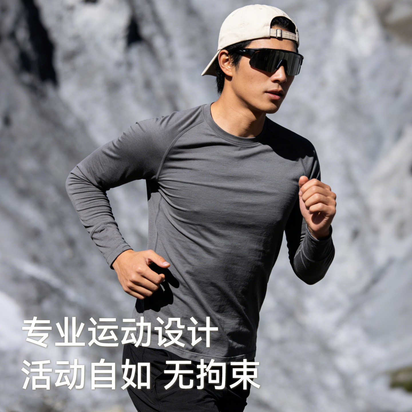 灰壳男士 美丽诺速干衣 运动手表口美利奴羊毛t恤户外徒步防晒长袖