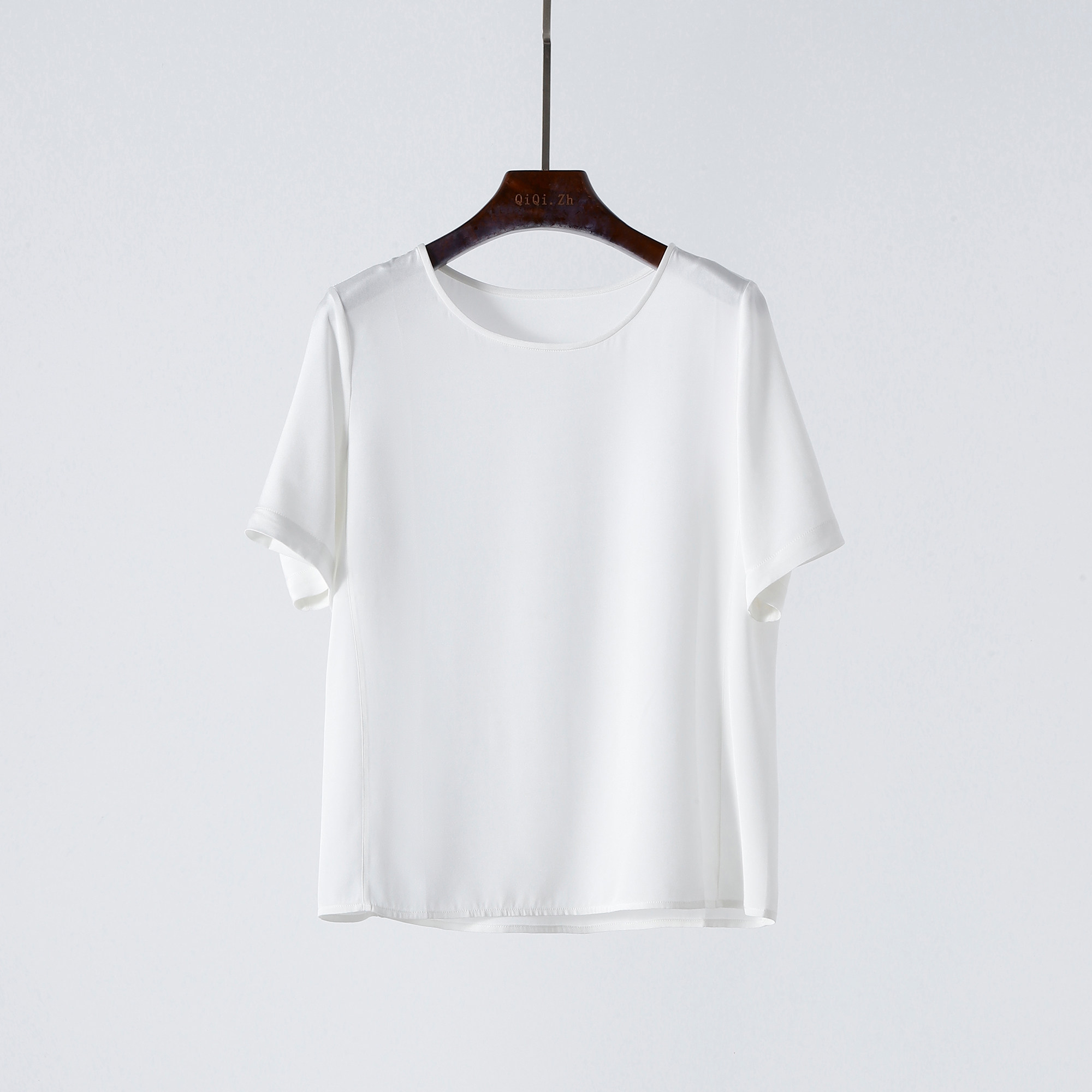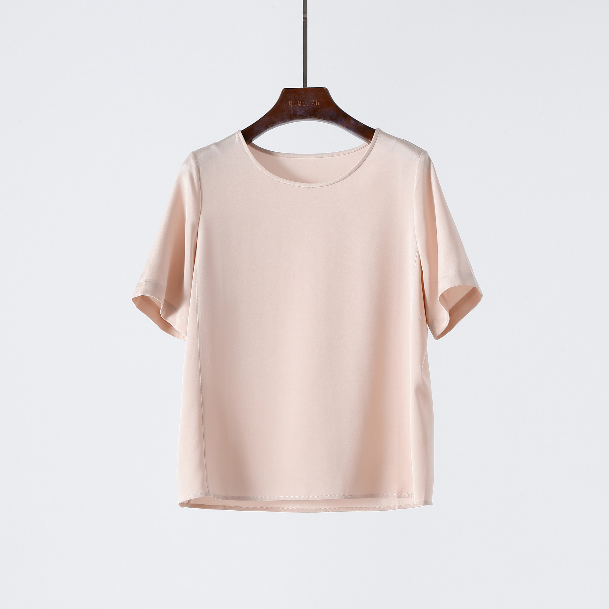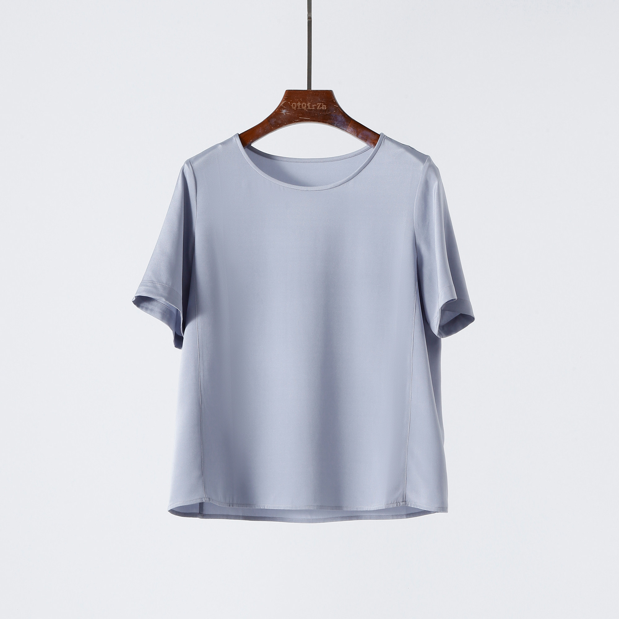 极简基础款 T恤百搭纯色桑蚕丝上衣 重磅真丝弹力重绉圆领落肩短袖