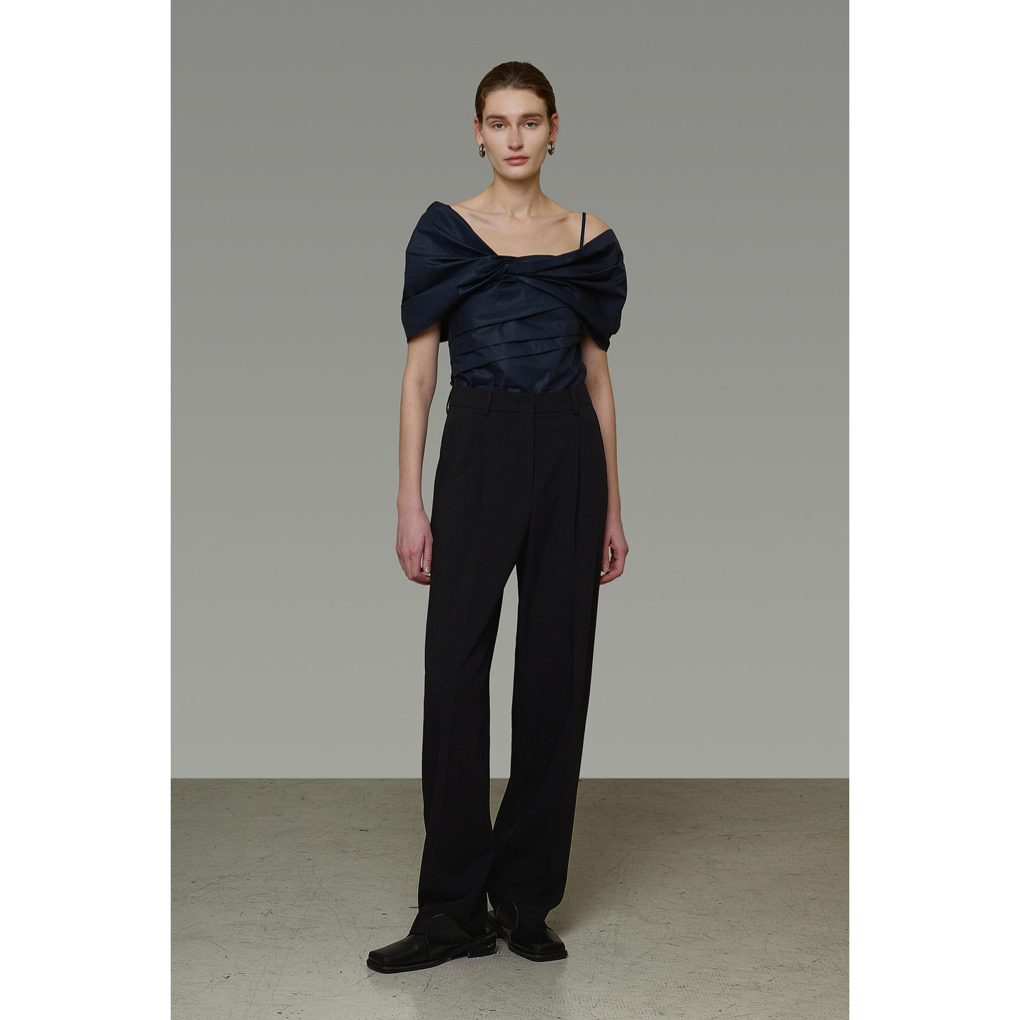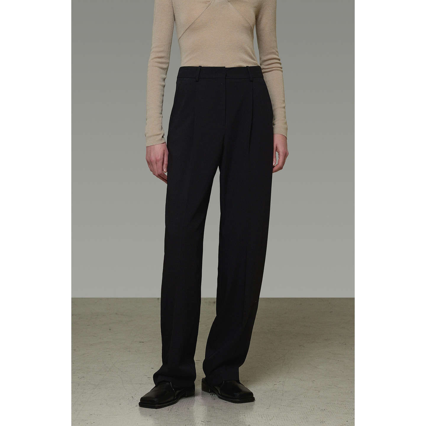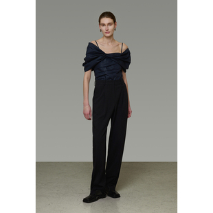 UNSPOKEN黑色西装 女高腰气质百搭微阔宽松法式 高级设计直筒长裤 裤