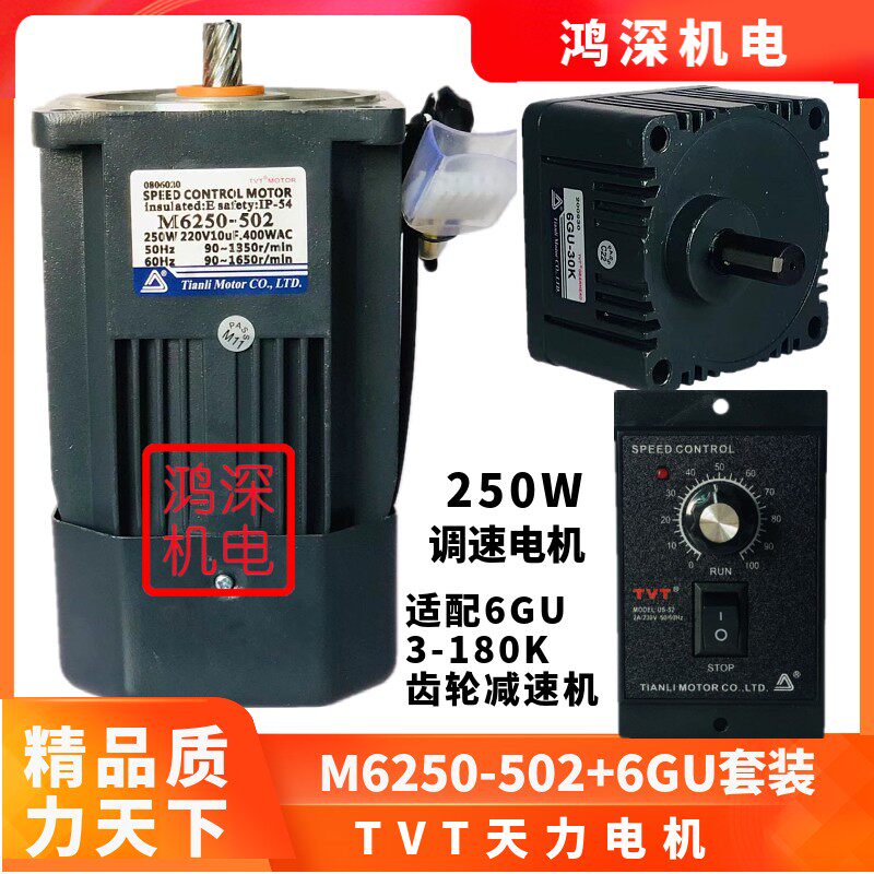 M6250 6GU天力电机TVT调速交流齿轮减速电机马达单相220V250W 502由