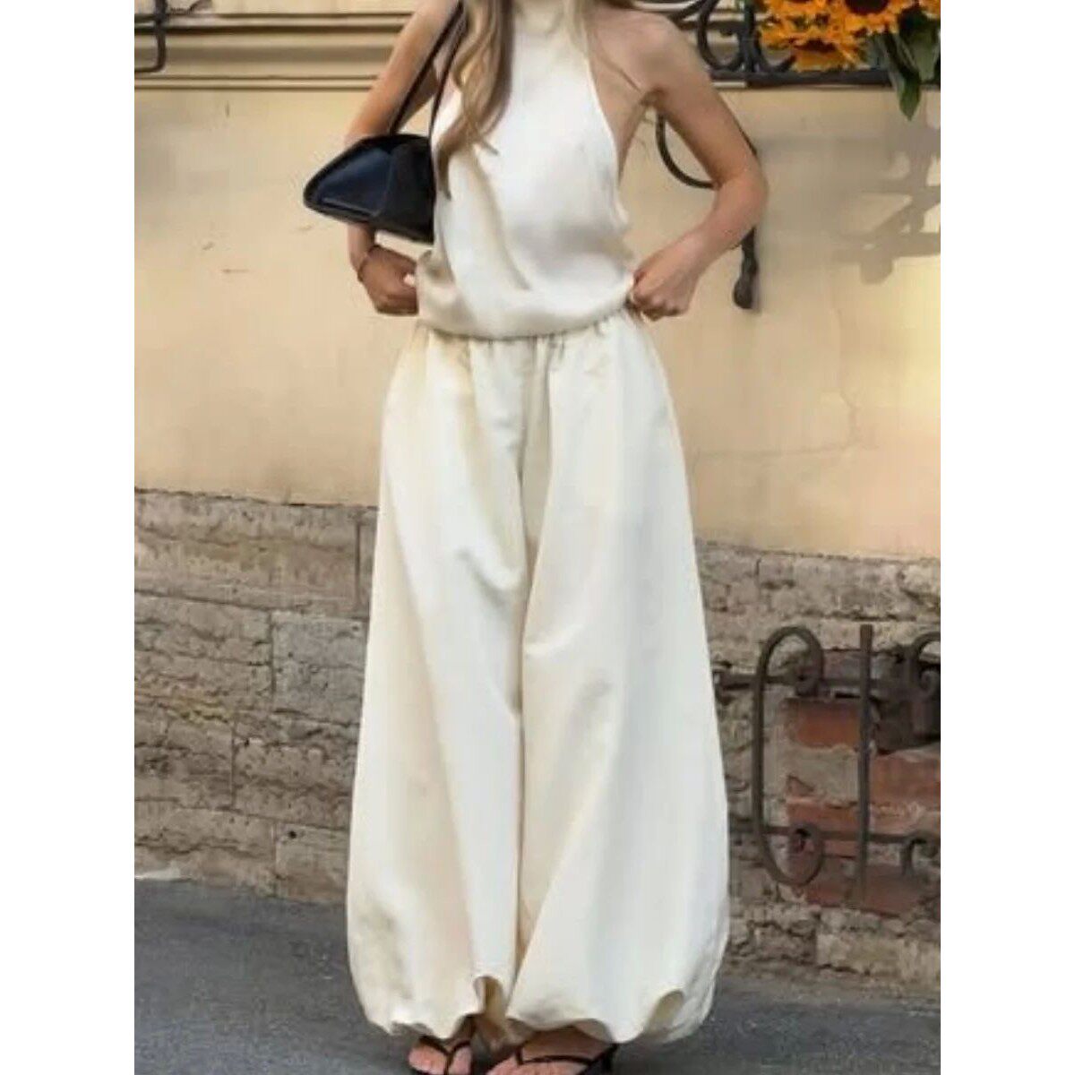 waisted High 长裤 pants wide leg loose 高腰蓬蓬纯色宽松阔腿裤