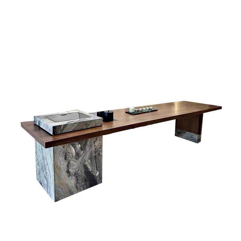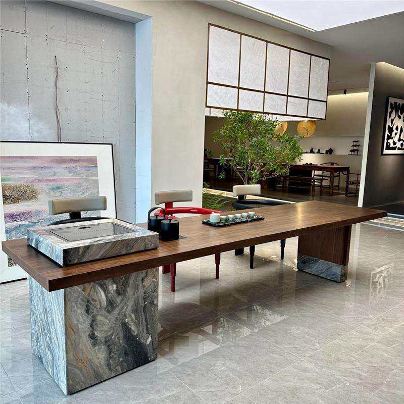新中奢式 美学茶室轻泡 北美黑胡木现代DQC岩板岛台桃茶桌家椅宋式