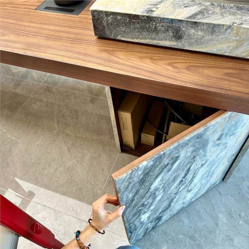 极简实木茶桌设计师别墅泡茶台简约大理石茶台黑百花岩板茶桌 意式