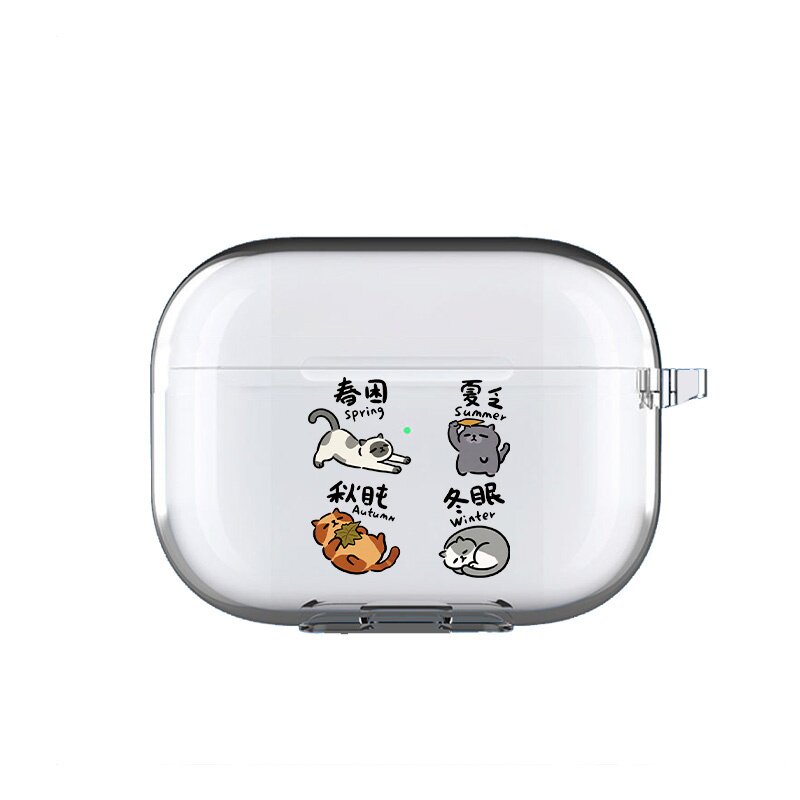 春夏秋冬猫适用airpodspro3保护套苹果4耳机套LinkBuds TWS5三星Buds3pro S透明clip2索尼XM5华为7i软壳vivo由