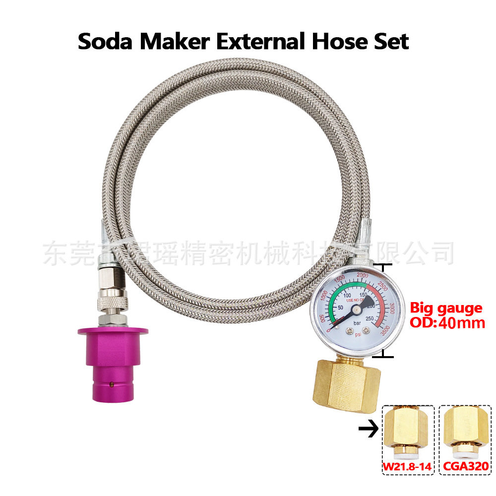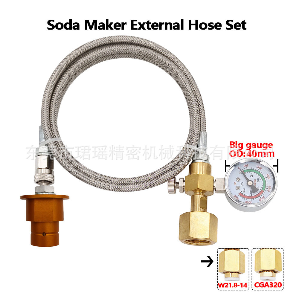 跨境苏打水DUO ART二氧化碳过气接头带压力表1.5米钢编软管 TERRA