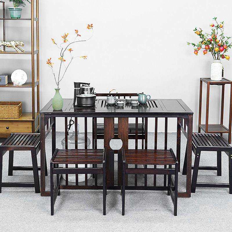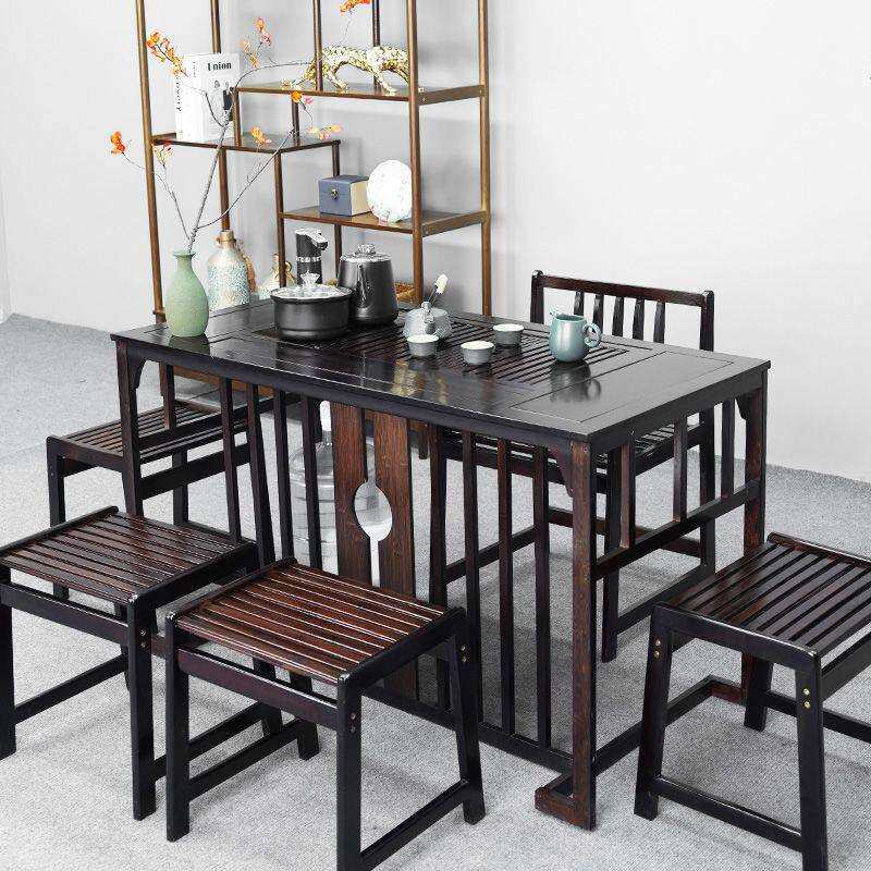 茶几办公室家用泡茶台一体 大板实木原木茶桌椅组合一桌五椅新中式