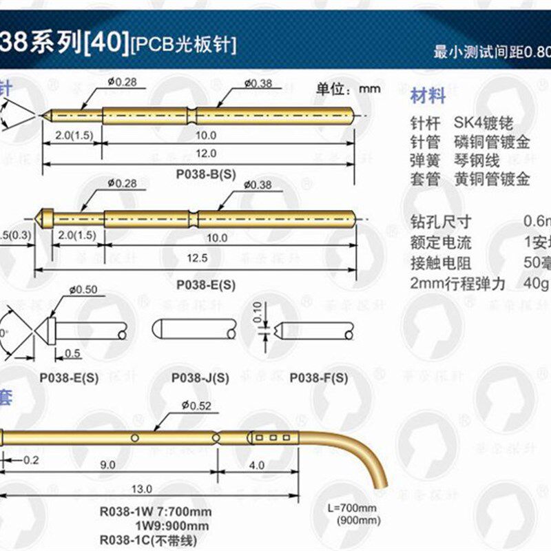 为您提供商品尖头探针 测试针 PCB顶针 B弹簧针 0.38mm精密针 0000 PA038的详细介绍,