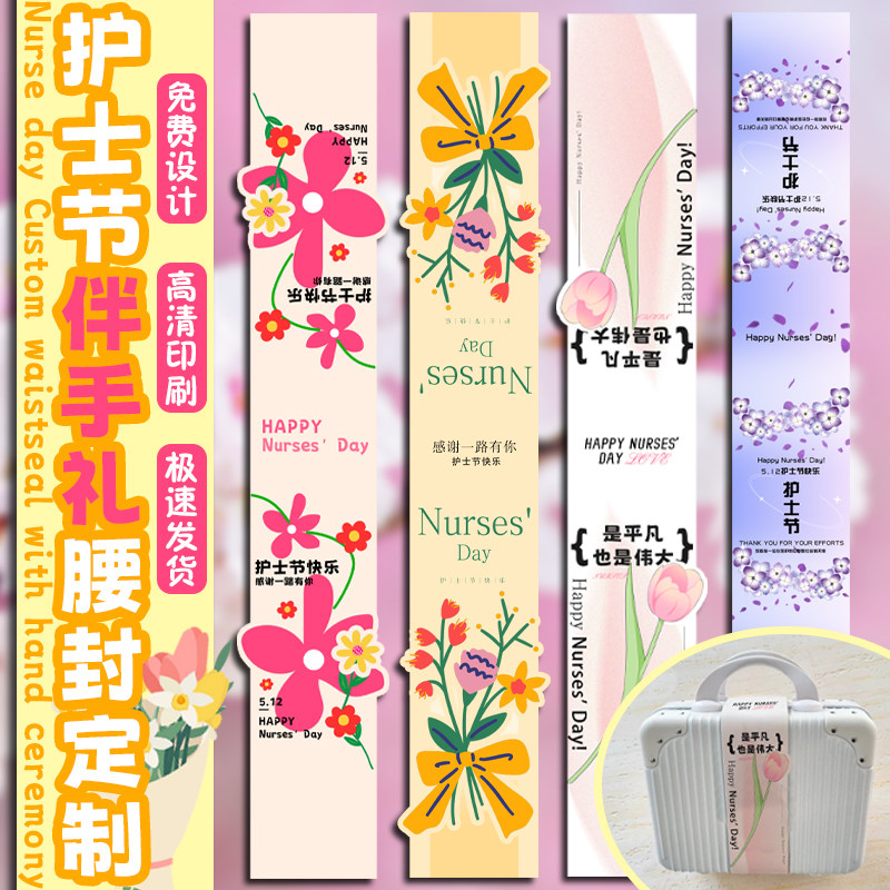 饰封条伴手礼祝福logo封套 护士节伴手礼腰封定制512节日礼品装