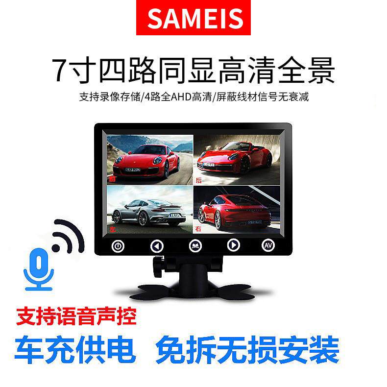 AHD高清4路摄像头轿货车载显示器前后倒车左右侧盲区辅助行车记录由