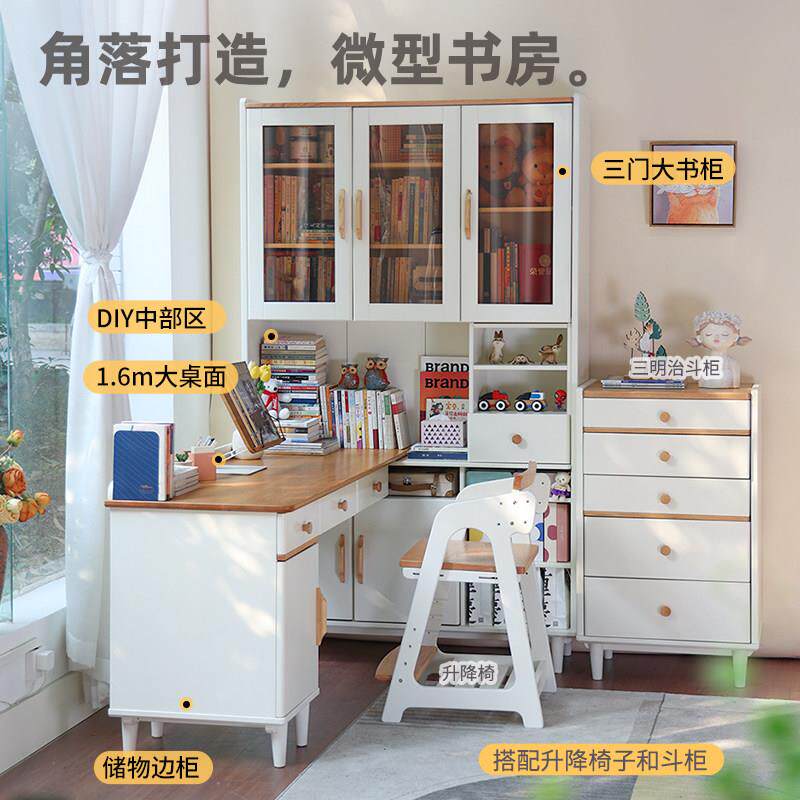 歌里图实木转角书桌书架一体北欧书柜组合儿童拐角学习桌学生家用由