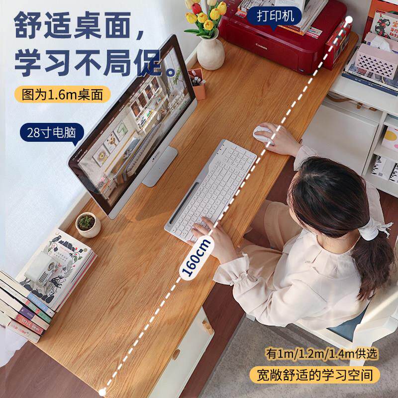电脑桌女生卧室梳妆台家用学生学习桌书桌书架一体桌 转角书桌台式