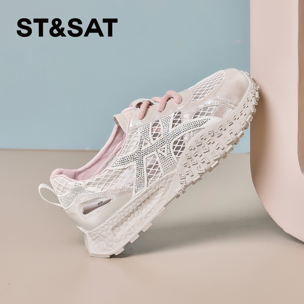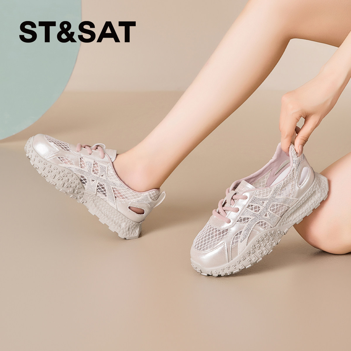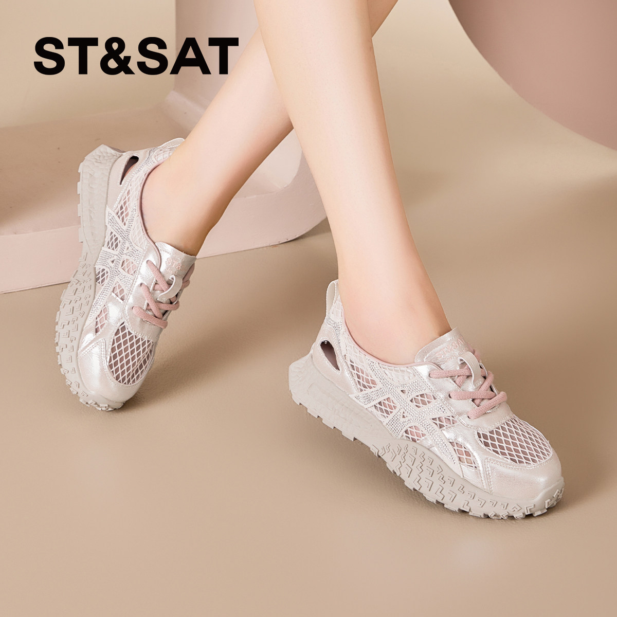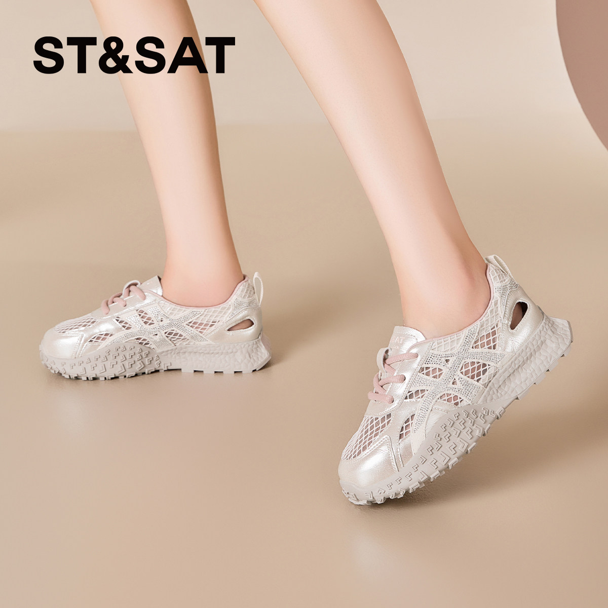 2026春夏新款 银熠 骆驼女鞋 厚底增高银色 休闲网面透气运动老爹鞋