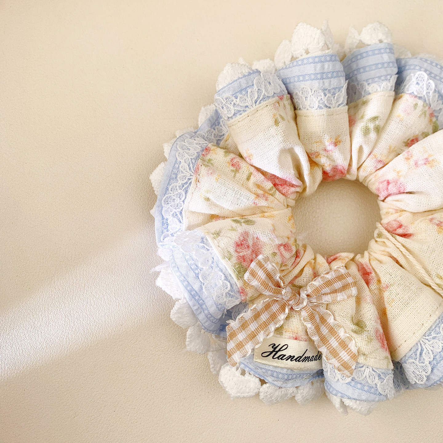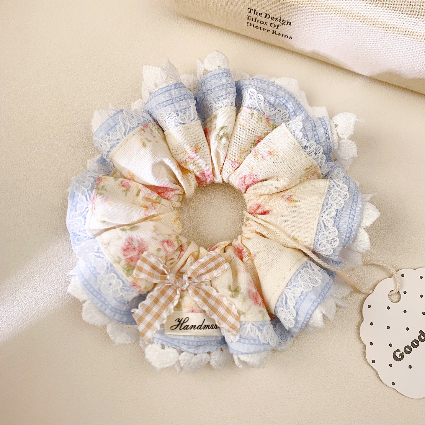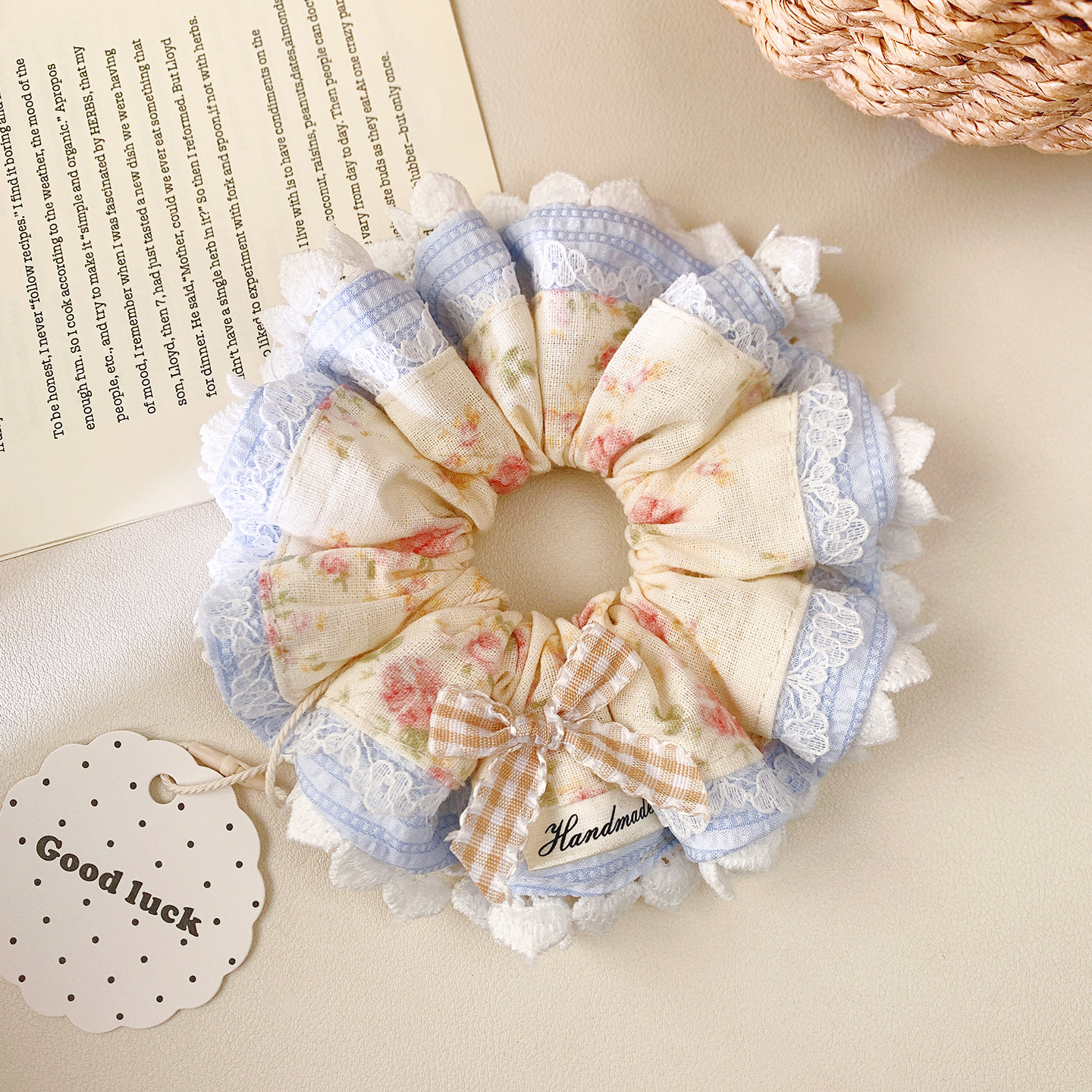 韩系碎花蕾丝花边大肠发圈女高级感复古慵懒风头绳甜美精致发饰