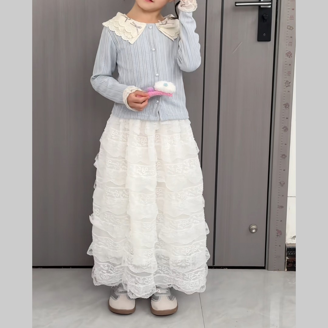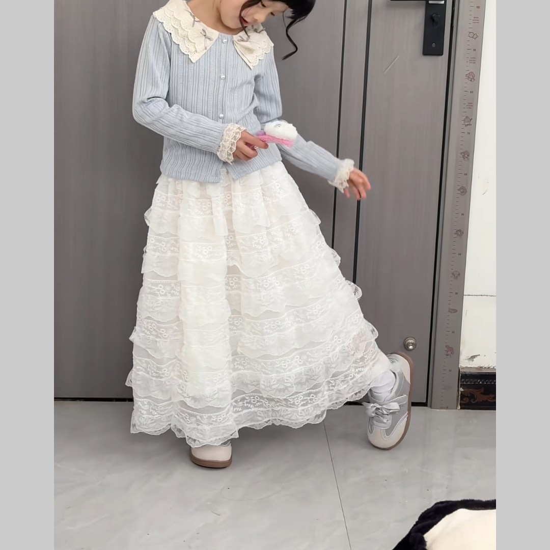 洋气儿童开衫 女童春装 套装 裙2026新款 外套花边长裙两件套宝宝春季