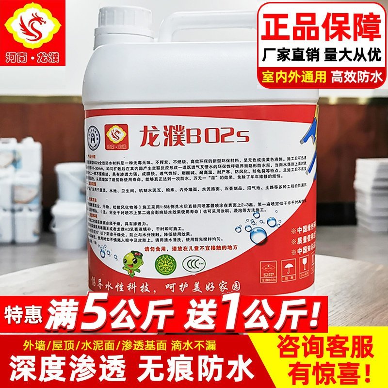 河南龙濮B02s纳米渗透防水透明屋顶外墙水泥漏水堵漏材料防潮防碱