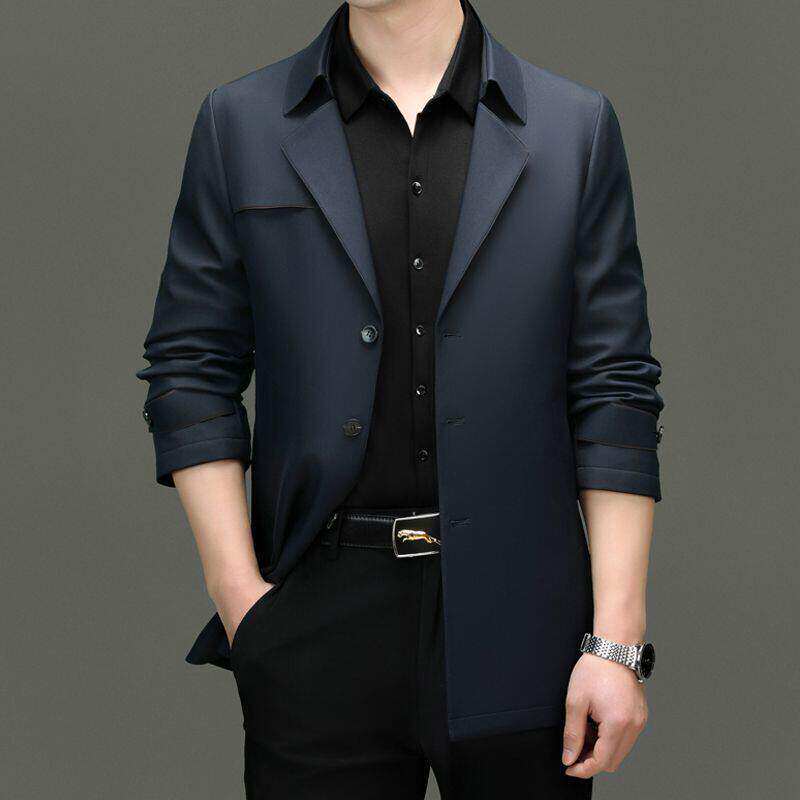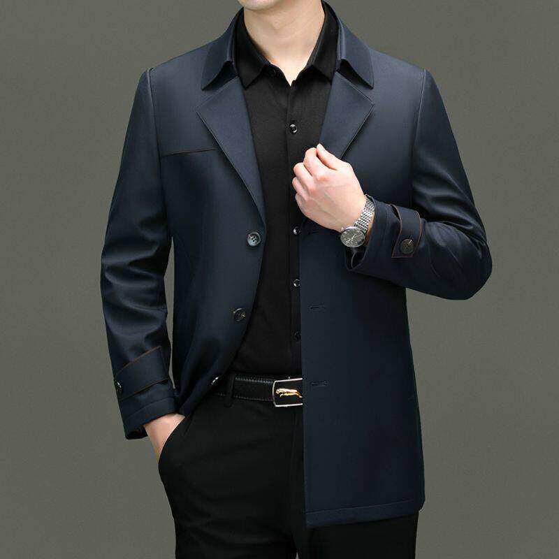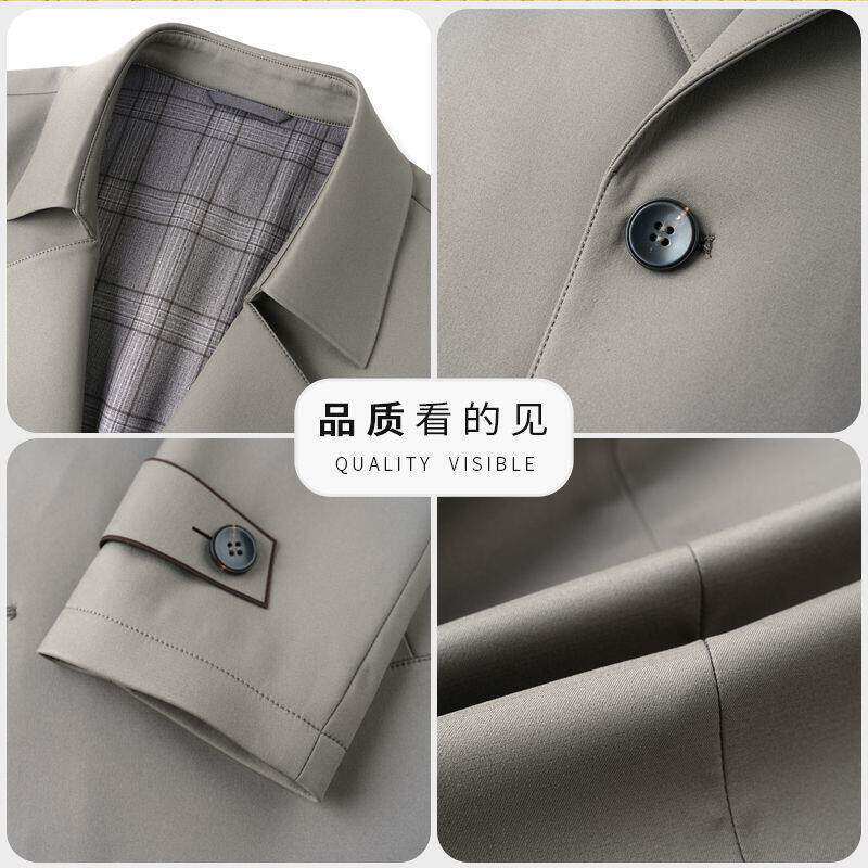 为您提供商品高档风衣单排三粒扣休闲西装 领夹克中年春秋上衣外套 男士 双层短款的详细介绍,