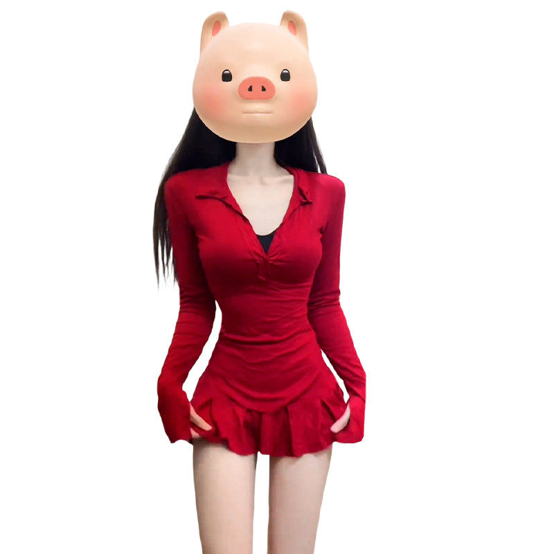 2025新款 子女性感纯欲包臀短裙初春季 穿搭一整套装 辣妹红色洋装