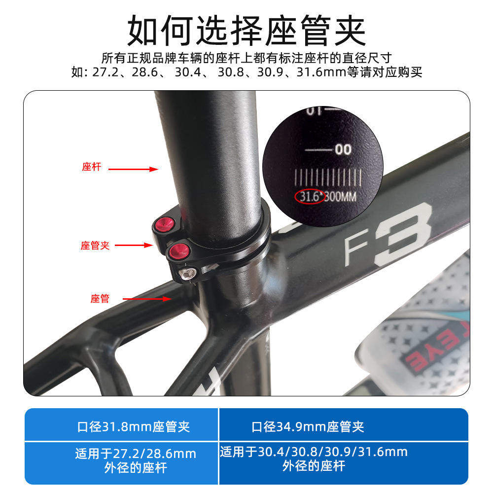 为您提供商品MOTSUV自行车座管夹 34.9mm夹环坐管锁扣 山地车镂空锁死座杆31.8的详细介绍,