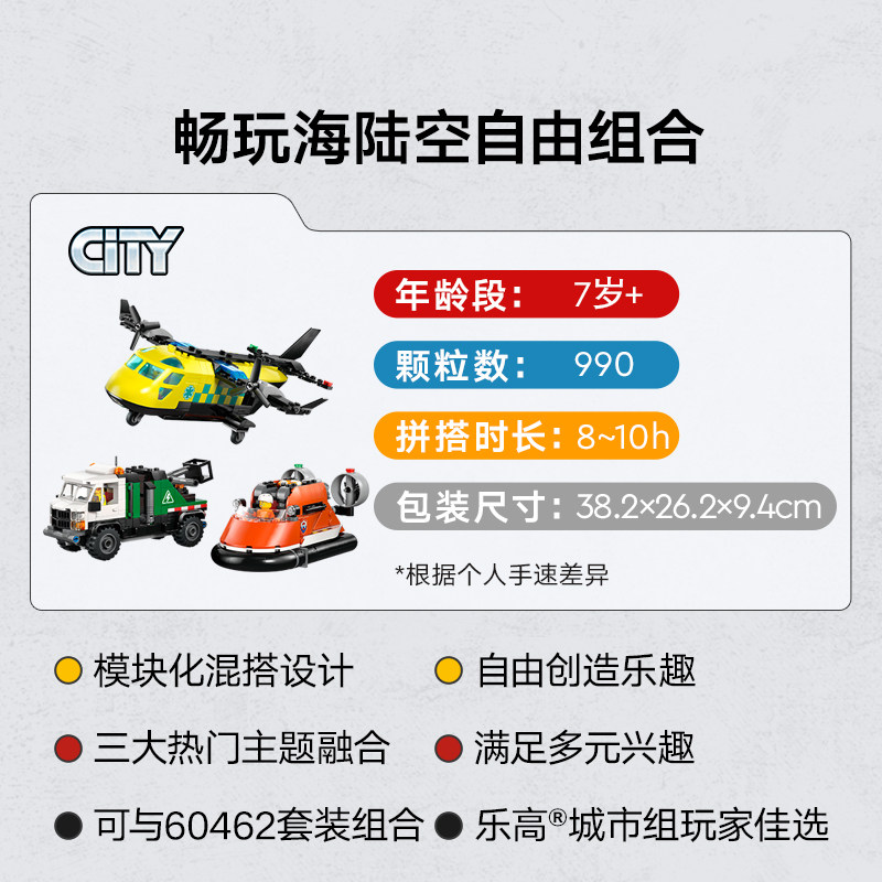 1月新品 积木玩具 LEGO乐高城市60505飞机工程车和悬浮船组合套装由