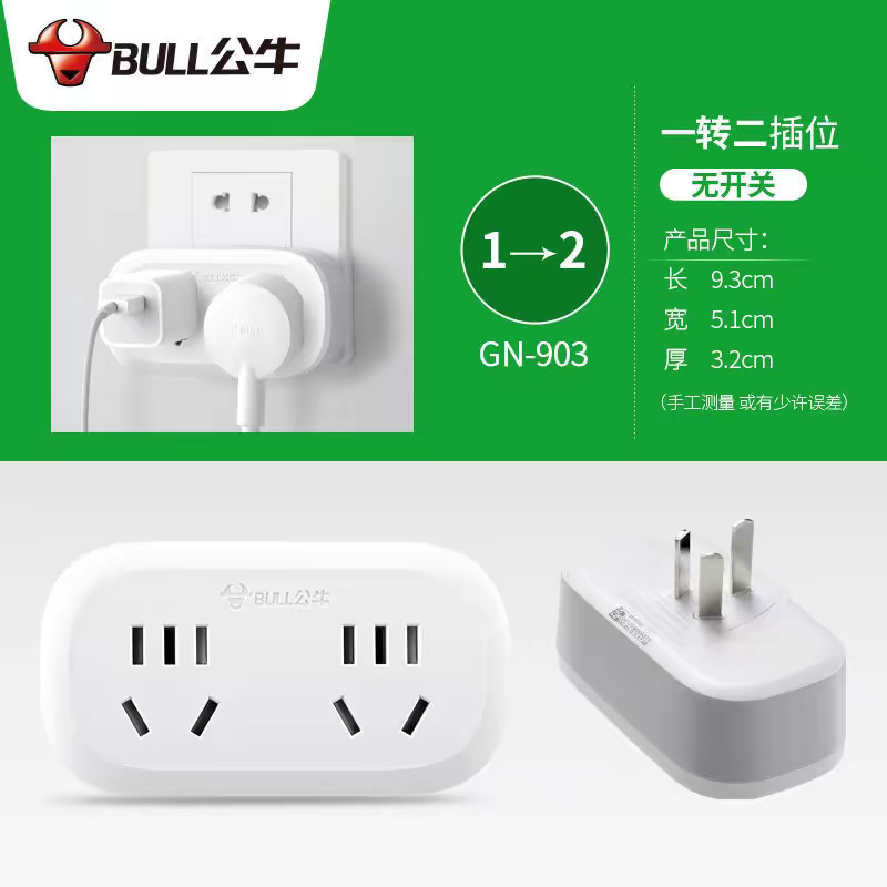 903 公牛插座面板多孔转换器一转多排查插板无线一拖二插头分插GN由