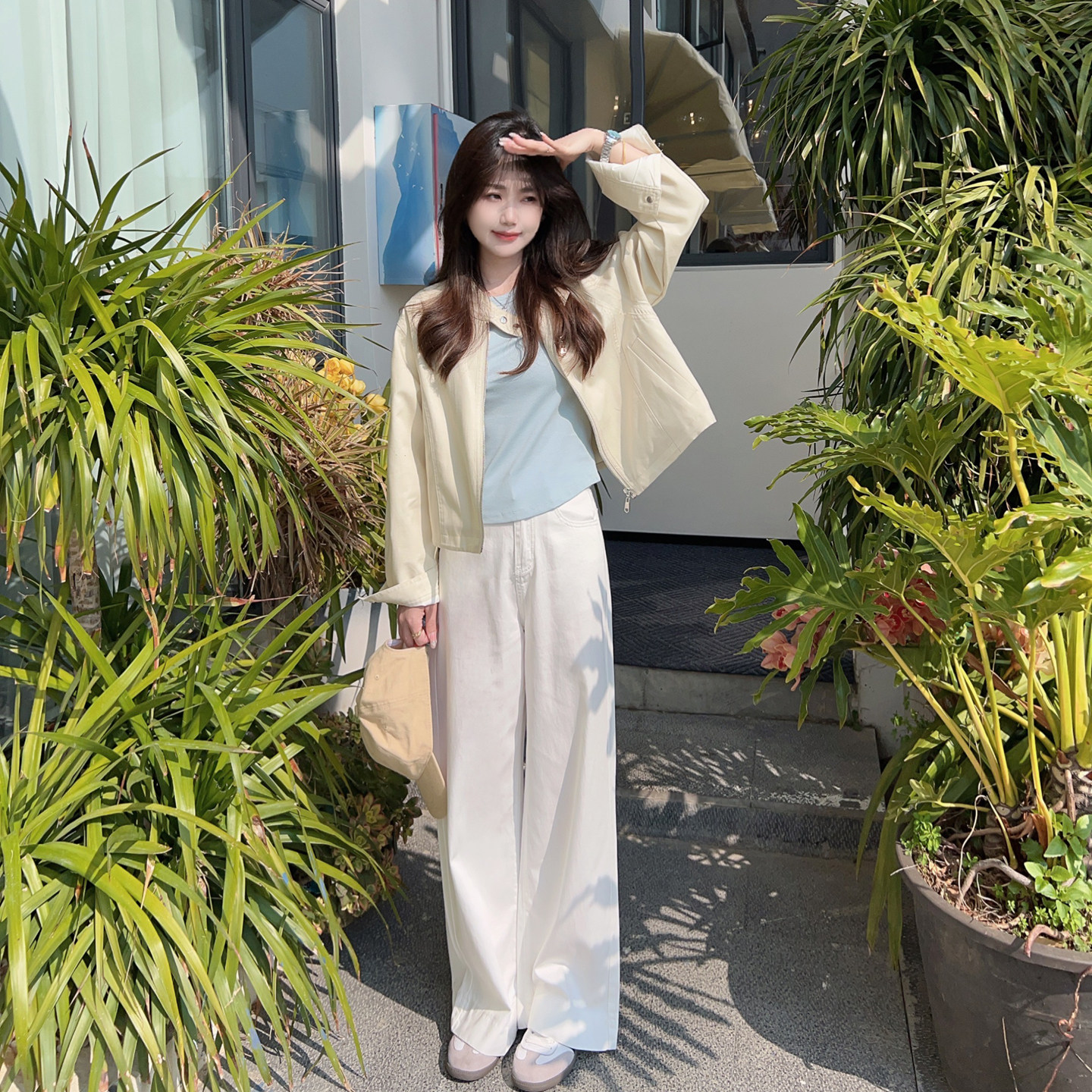 橘子树在哪儿白色复古直筒牛仔裤 款 高腰宽松垂感拖地阔腿裤 女春季