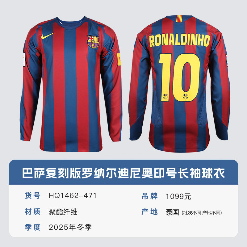 为您提供商品球衣男HQ1462 471 10号小罗印号长袖 小李子NIKE耐克巴萨球员复刻版的详细介绍,