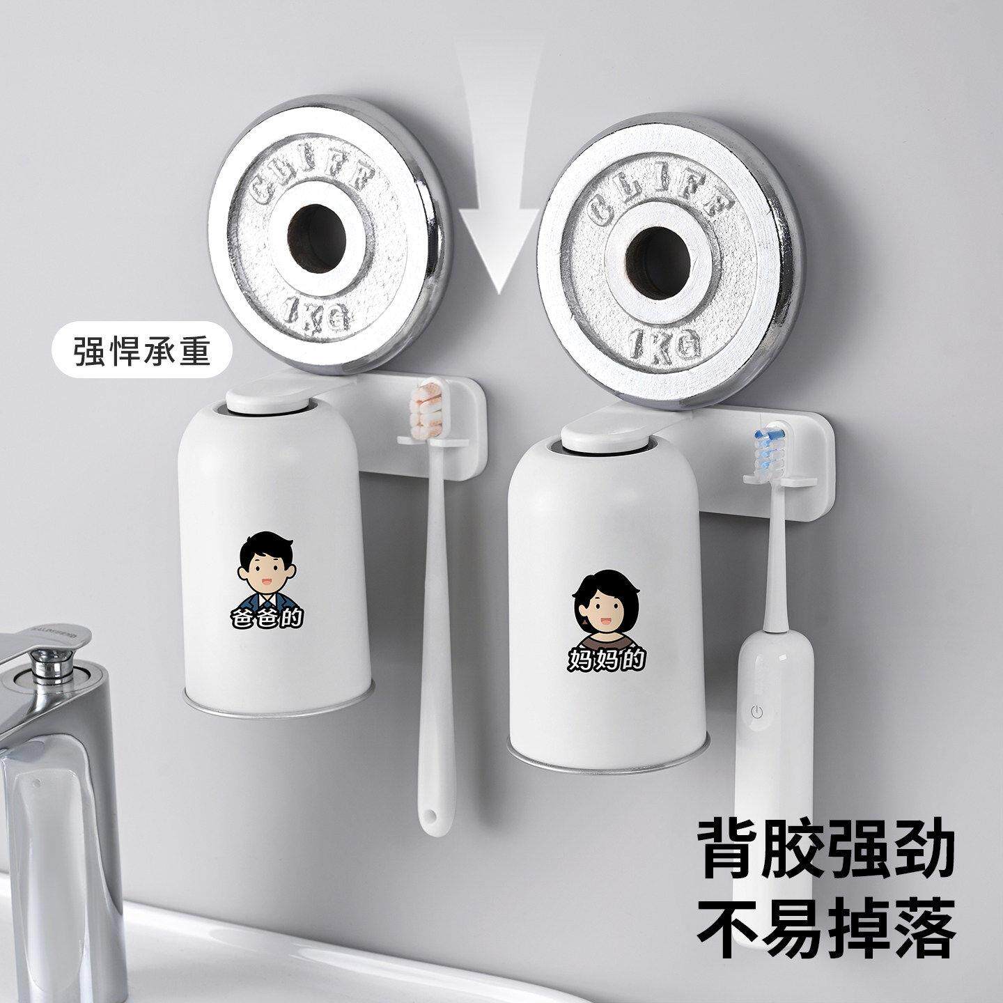 日式 不锈钢漱口杯牙刷置物架一家三口刷牙杯子架壁挂免打孔 磁吸式