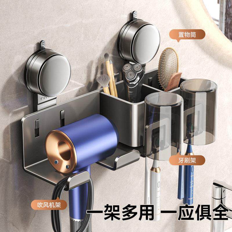 牙刷置物架刷牙杯免打孔化妆室吹风机壁挂漱口杯收纳 一卫吸盘式由