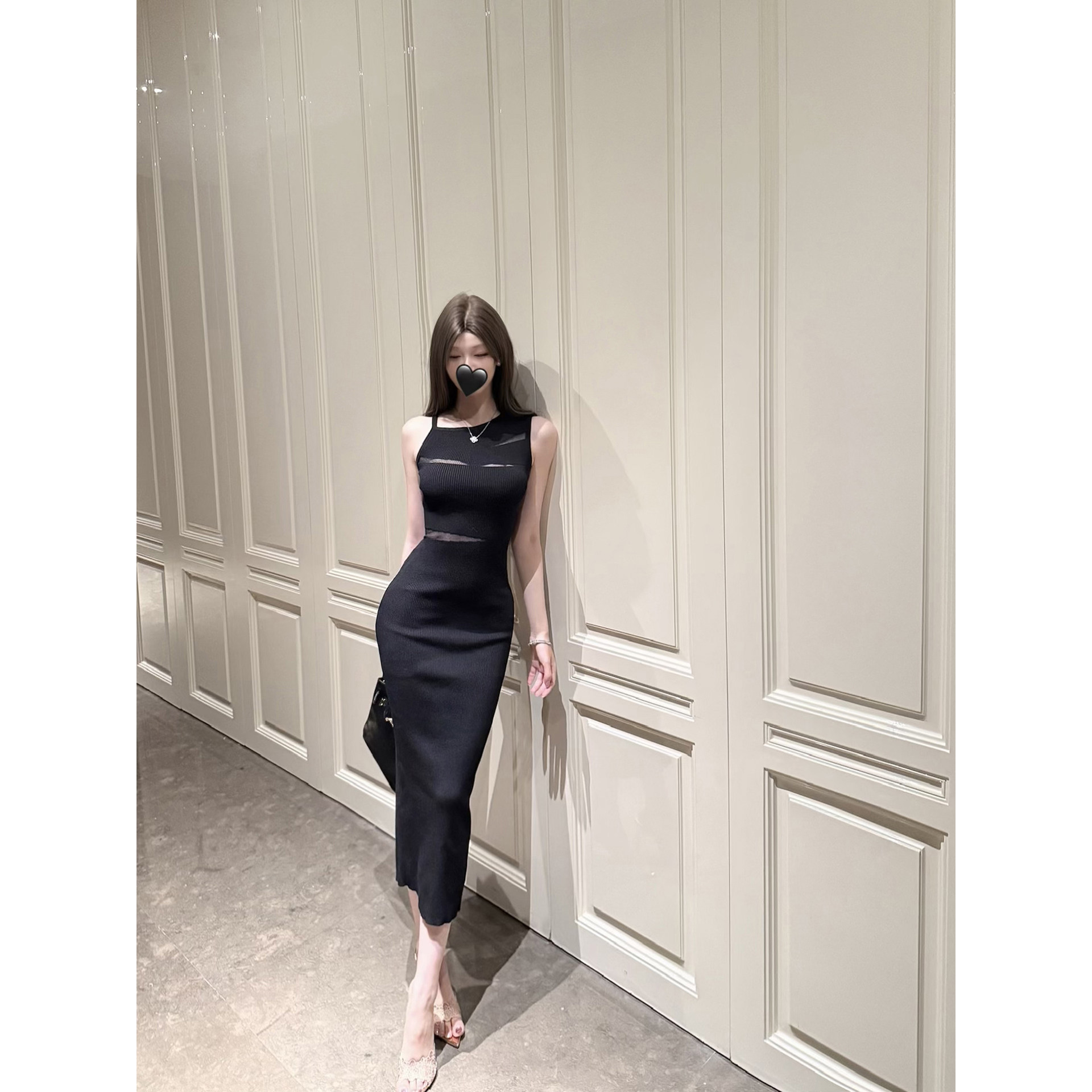 透视拼接设计感连衣裙女夏修身 高腰包臀裙 娇柔月光 CCZEE由