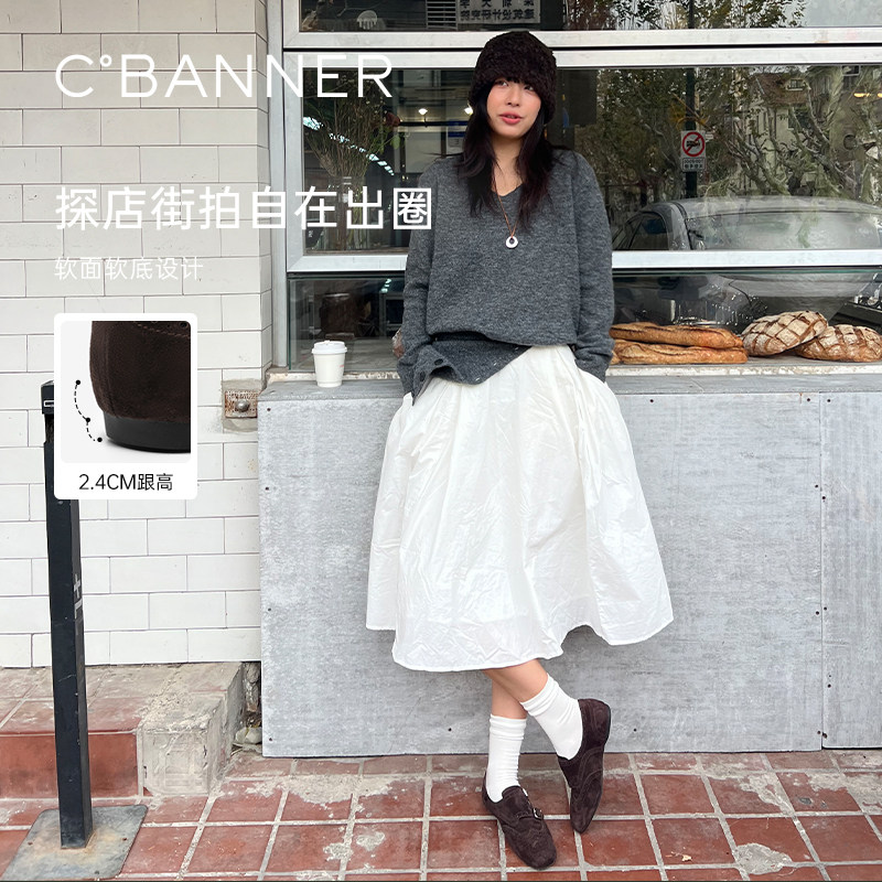 英伦豆豆鞋 百思图26春新款 绒面羊皮鞋 miu系乐福鞋 UXE01AA6 女单鞋