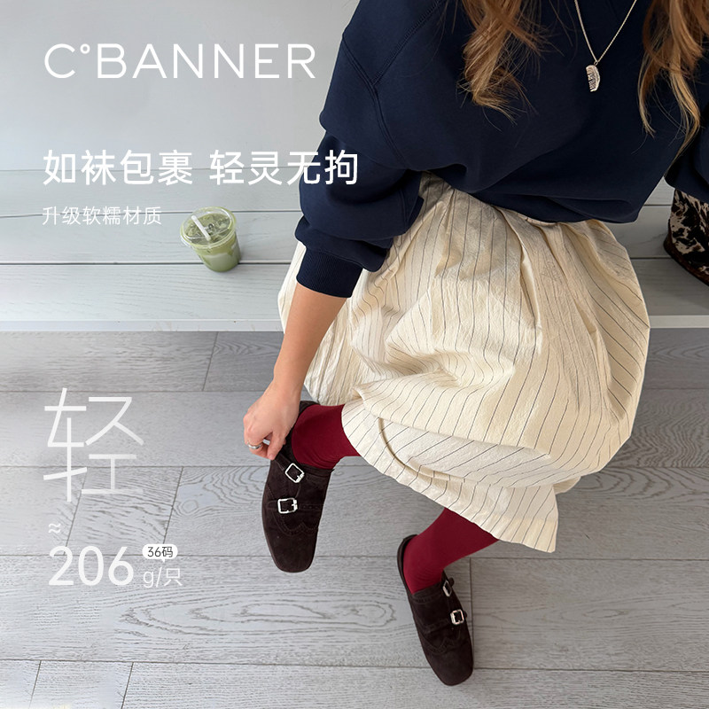 豆豆小皮鞋 明星同款 百丽肉桂卷一脚蹬乐福鞋 女新款 子E1W1DC 单鞋