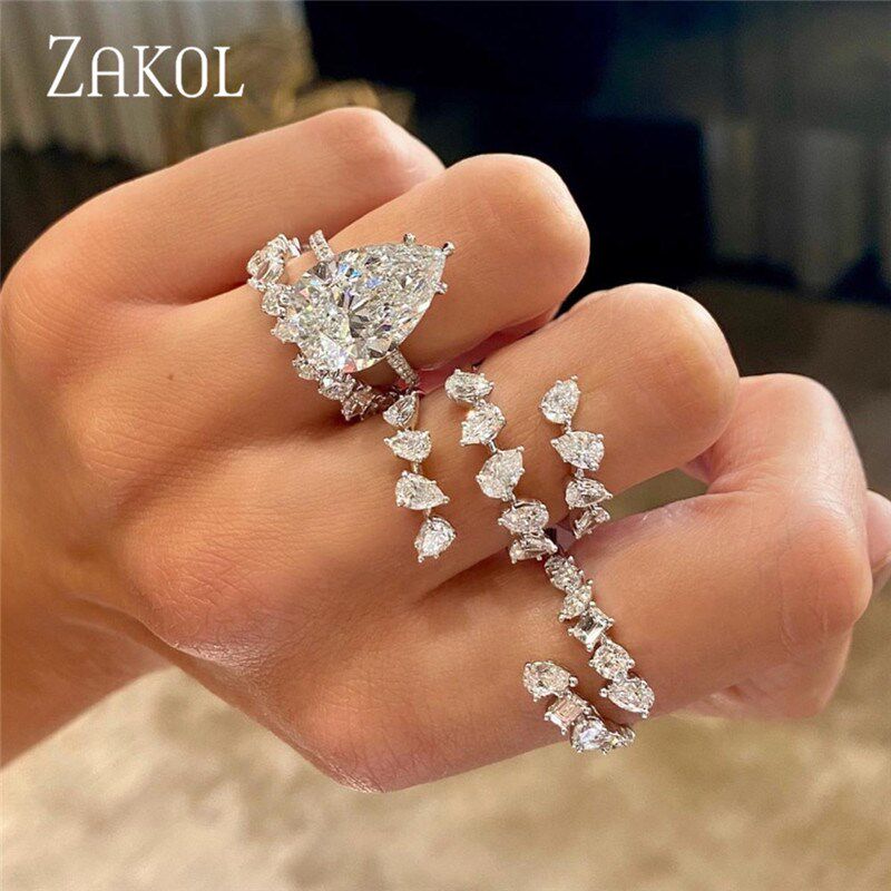 ZAKOL Zirconia for Wom Irregular Rings Layers Fashion Open由