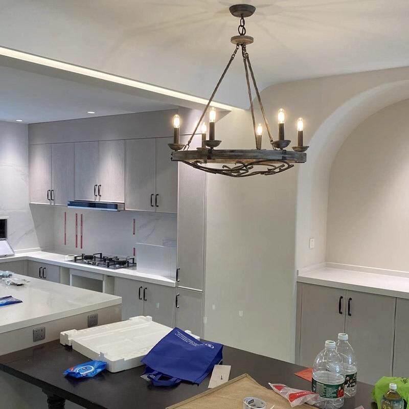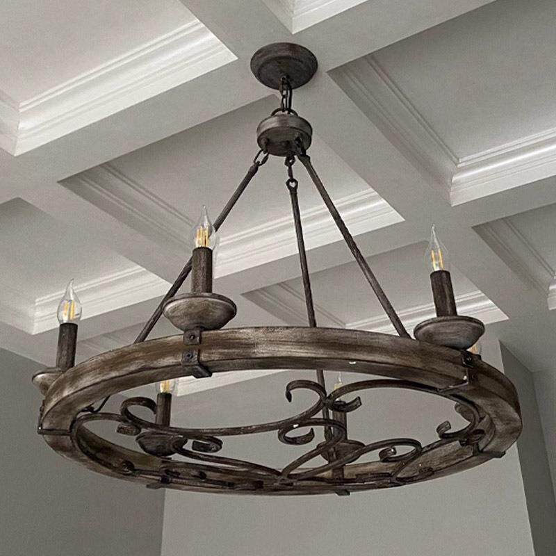 复古工业风木艺车轮吊灯客厅灯餐厅灯饰设计师卧室别墅灯具 美式