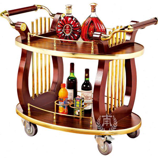 南方C 古典竖琴红酒车餐饮宴会厅手推服务车 90A酒水车双层仿中式