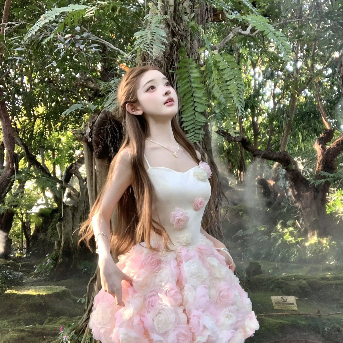 梦野长廊 荷叶边花苞吊带裙女清冷气质连衣裙 热狗很辣 Hotdog